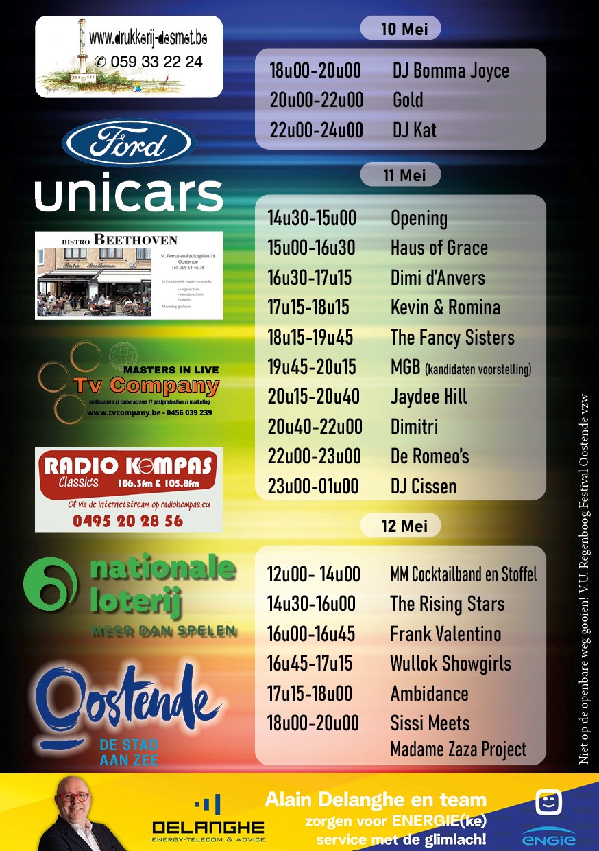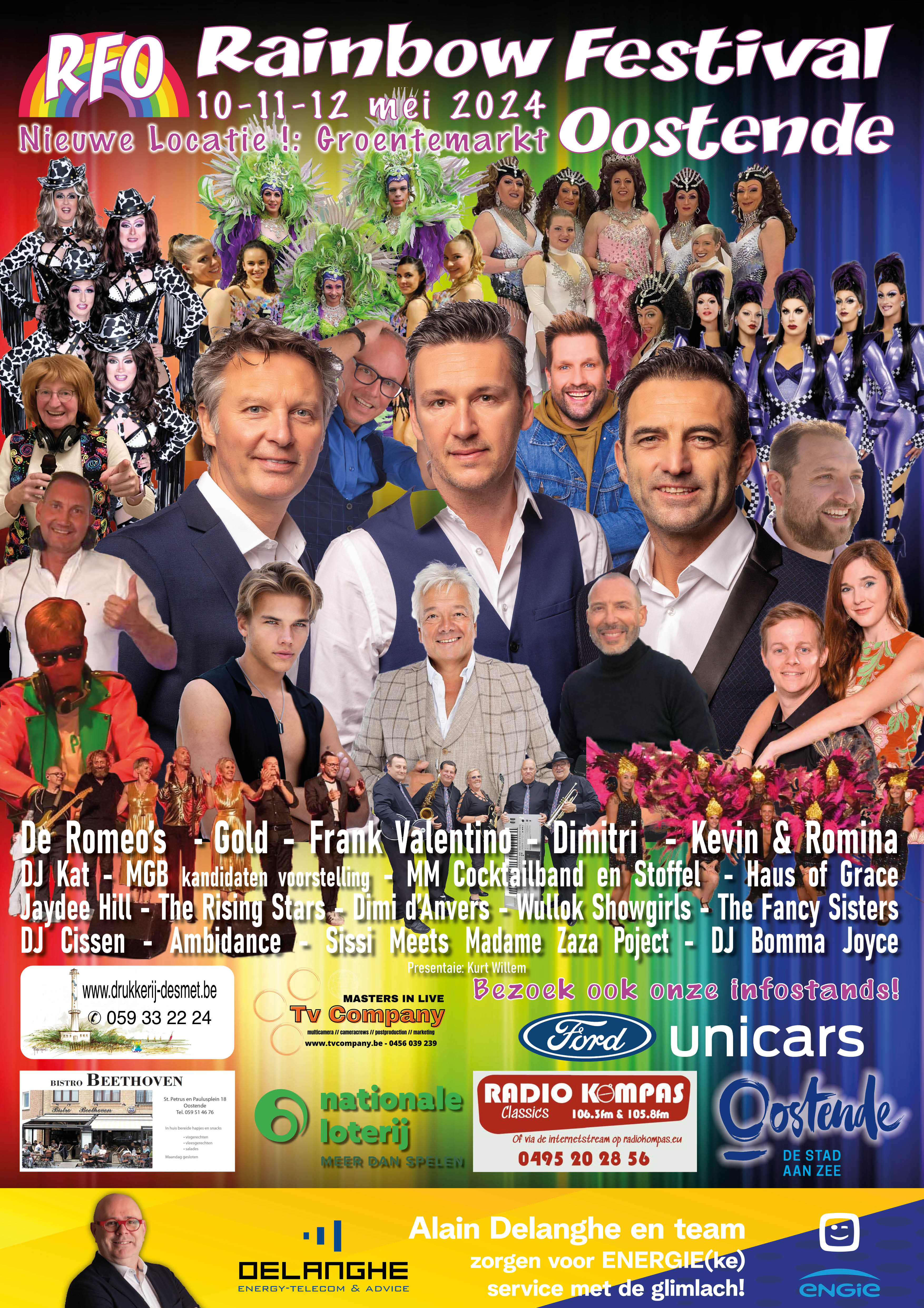 De vzw Rainbow Festival Organisation organiseert op 10-11 & 12 mei 2024 de 3de editie van het Rainbow Festival Oostende op het groentemarkt te Oostende.